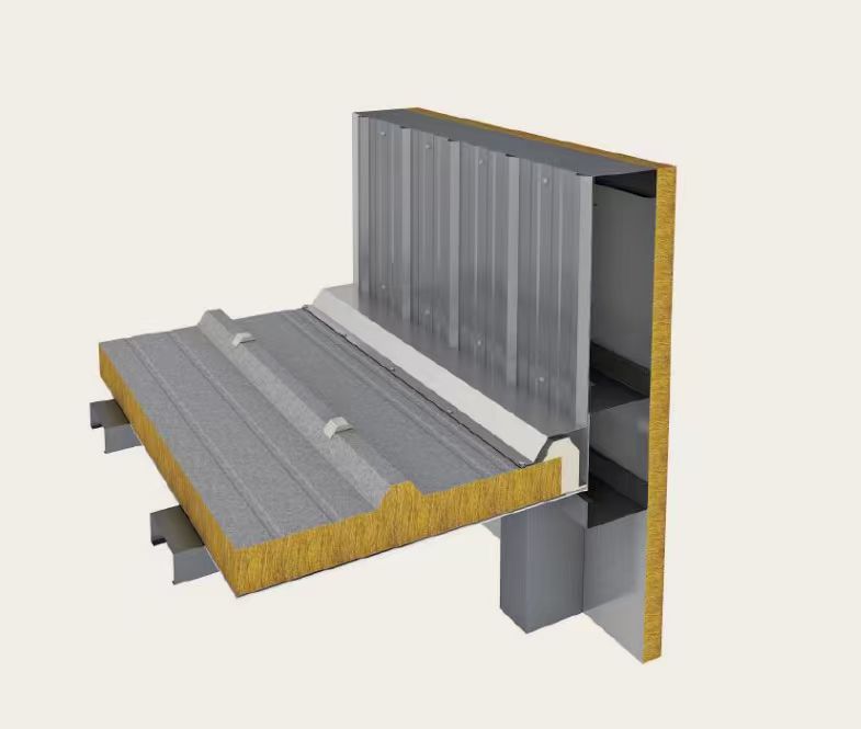 金属泛水板防护:女儿墙、檐口等易积水部位安装金属泛水板,机械固定并密封拼接缝,引导雨水快速排水,避免侵蚀岩棉板,保障屋面系统长期稳定。